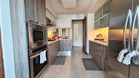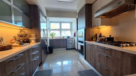 Ese lugar tiene dos armarios de ropa blanca de un lado y casi llegando al área del desayunador otro armario de dos puertas