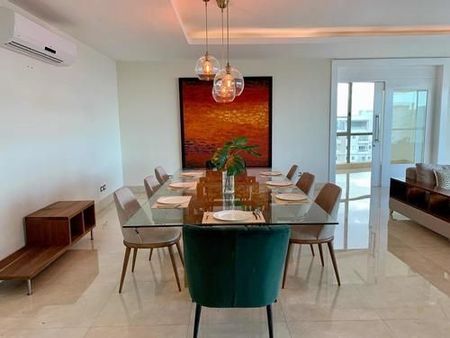 Esta elegante propiedad ofrece acabados de alta gama, amplios espacios iluminados, cocina moderna equipada, dormitorios con baño privado y walk-in closet, así como balcones con vistas impresionantes. El edificio cuenta con seguridad 24/7, ascensor, gimnasio, parqueo techado y área social. Ideal para quienes buscan vivir con estilo en una de las zonas más privilegiadas de Santo Domingo.