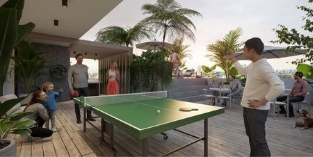 -Rooftop: Deck amueblado, piscina, Terraza, sportbar, bar/ lounge.