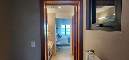 La unidad cuenta con sala, comedor, cocina equipada y un amplio balcón con vista directa al mar. El proyecto ofrece amenidades de primer nivel: piscina frente a la playa, casa club con restaurante, áreas verdes y seguridad 24/7.