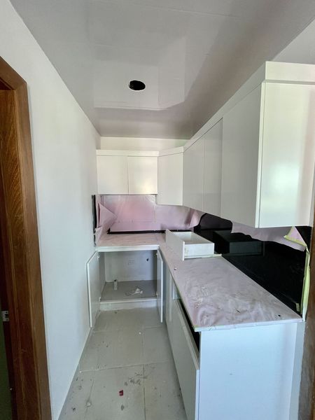 El apartamento cuenta con una sala de estar elegante, decorada en tonos suaves para complementar la belleza natural que se observa a través de los ventanales. La cocina podría ser moderna y estar equipada con electrodomésticos de alta gama, con una isla central que ofrece tanto espacio de trabajo como un lugar para disfrutar de comidas informales con vista al mar.