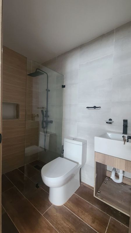 El apartamento cuenta con 2 habitaciones. La habitación principal incluye un amplio walk-in closet y su propio baño privado, mientras que la habitación secundaria también cuenta con baño propio. Además, el apartamento dispone de un baño de visitas para mayor comodidad y un parqueo.