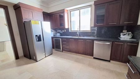 3 habitaciones con walking closet y baño, habitación principal con baño de dos duchas y vestidor revestido en cedro, clóset de Ropa blanca, sala de estar, family room o estudio con aire central, balconcete, amplia cocina, área de lavado y planchado con ductos de basura.