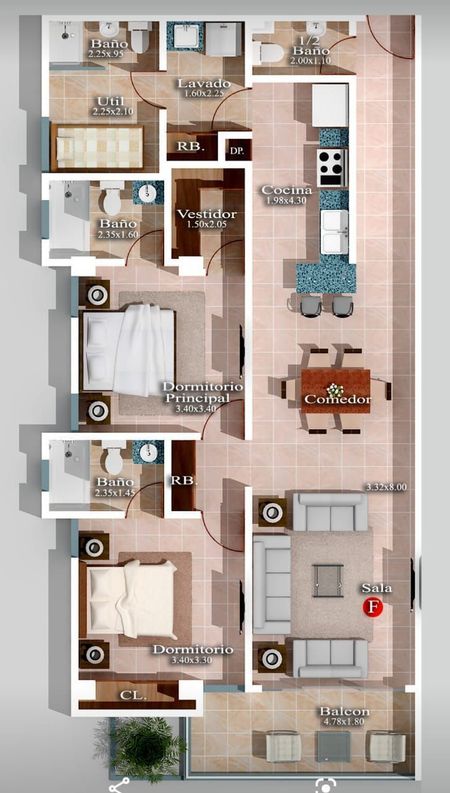 • Madera preciosa en puertas y closet.