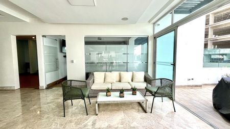 Amplio, luminoso y cómodo apartamento con linea blanca, consta de: sala, comedor, family room , cocina cerrada, tres habitaciones, cada una con su baño adentro, perfecto para familia con niños, tiene una amplia terraza privada. Torre con amenidades: gimnasio, piscina y salon de reuniones.