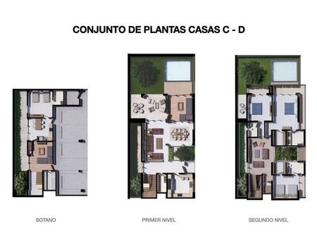 El proyecto consiste en dos versiones de Town House AyB y CyD donde la diferencia es el metraje. Cada versión tiene 3 niveles.