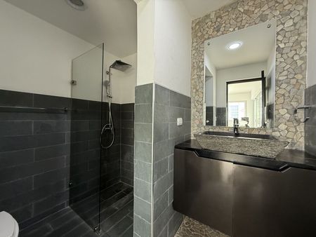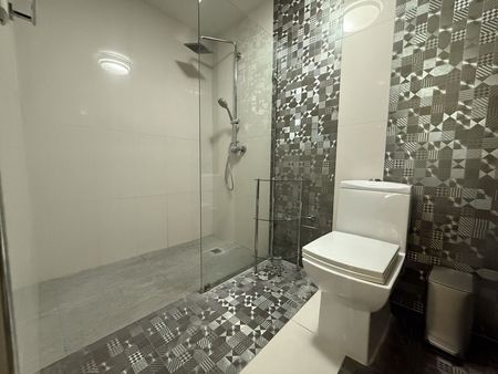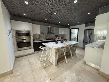 Cada una de las cuatro habitaciones tiene su propio baño, lo que proporciona privacidad a los residentes. La cocina está equipada con una isla central y electrodomésticos modernos, facilitando la preparación de comidas y el uso diario.