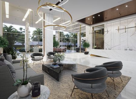 Lobby moderno y climatizado con doble altura