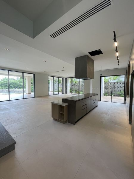 La planta baja conta de una espaciosa sala y comedor integrados con orientacion a la picina y a sus bellos y cuidados jardines consta ademas de 2 estudio, oficina, cocina fria con isla y acabados de primera. Area de parrillada y habitaciones de servicios en esta planta.