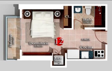 1 Habitacion, balcon, cocina, baño, closet, cocina y area de lavadora, 61.30 m2 US$164,130