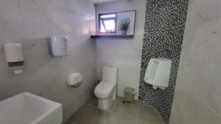 Baños comunes para los locales del piso. Contáctanos hoy mismo para agendar una visita y encontrar el espacio perfecto para tu negocio.