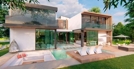 Hermosa Villa con un concepto abierto y minimalistas con un estilo contemporáneo moderno, con una arquitectura que mezcla la elegancia con las últimas tecnologías, adaptándose al entorno natural y golfista que la rodea.