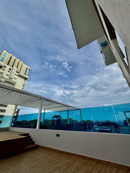 Divididos en 2 pisos, el 1er nivel con sala, comedor, cocina estilo americano, baño completo con ducha, área lavado y su terraza y jacuzzi privado en teak con vista mar.