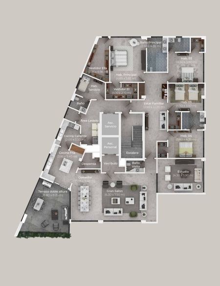 Terraza con doble altura