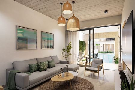 Es un proyecto de apartamentos ubicado en una de las zonas turísticas con mayor potencial de la zona este y a la cercanía de la playa Juan Dolio, el proyecto gira en torno al área social principal que cuenta con una gran piscina lineal, cueneta con área de juegos para niños y bbq. Ofreciendo 20 apartamentos divididos en 2 bloques de 2 niveles en un terreno de 3,000 m2. Con 3 tipologías de apartamentos en donde los mismos varían con jardín, swim-up pool y amplia terraza.