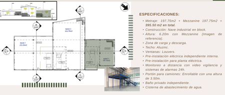NAVE 3: Superficie: 197.75 m² + Mezzanine: 197.75 m² = Total: 395.50 m²