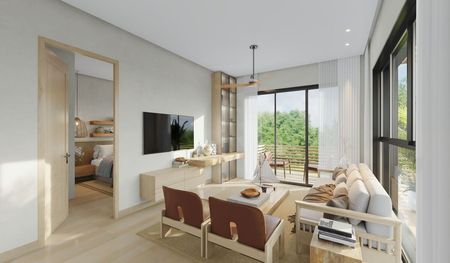 Nuestro proyecto cuenta con 144 unidades en total, dividido en 9 edificios, con apartamentos de 1 y 2 dormitorios. Ha sido concebido con muchas áreas verdes, y tendrá como amenidades piscina y áreas sociales.