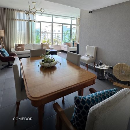 Apartamento de 292 metros en 2 niveles, con 3 habitaciones, 2.5 baños, cocina con desayunador, amplia sala, comedor, además cuenta con gimnasio y jacuzzi privado. Un hogar que combina amplitud, confort y estilo moderno, pensado en quienes valoran bienestar y calidad de vida.