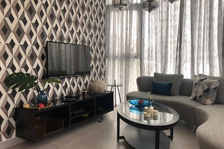 Las puertas de madera preciosa aportan calidez y un aire de lujo. La cocina modular, equipada con una estufa de tope, combina funcionalidad y estilo contemporáneo. Además, el tope de quarzo de tono claro o similar agrega un aspecto lujoso y duradero.